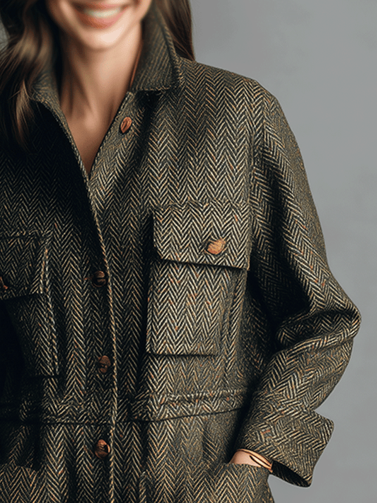 Elegant Vintage Silver Thread Edged Puff Sleeve Woolen Jacket