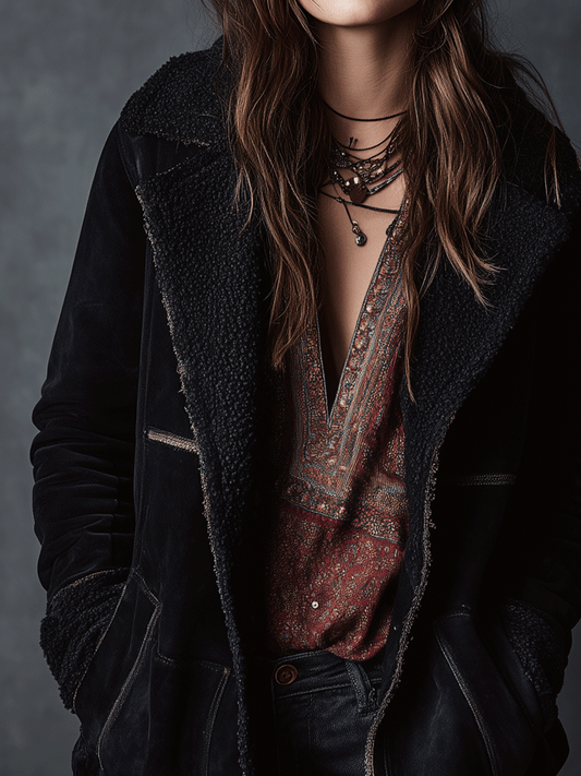 Vintage Black Eco Fluffy Lining And MIcrosuede Jacket