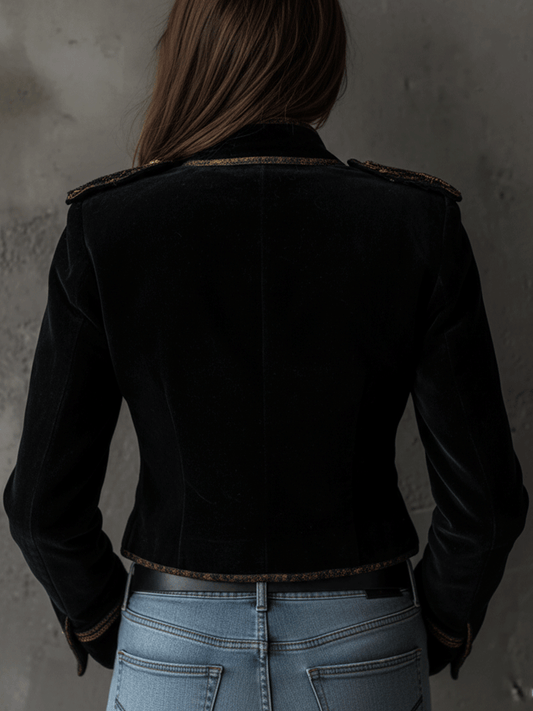 Retro Black Velvet Military Gold Button Detailing Blazer