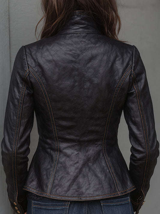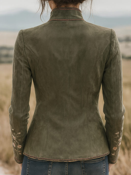 Retro Eco-friendly Leather Contrast Trim Suede Jacket