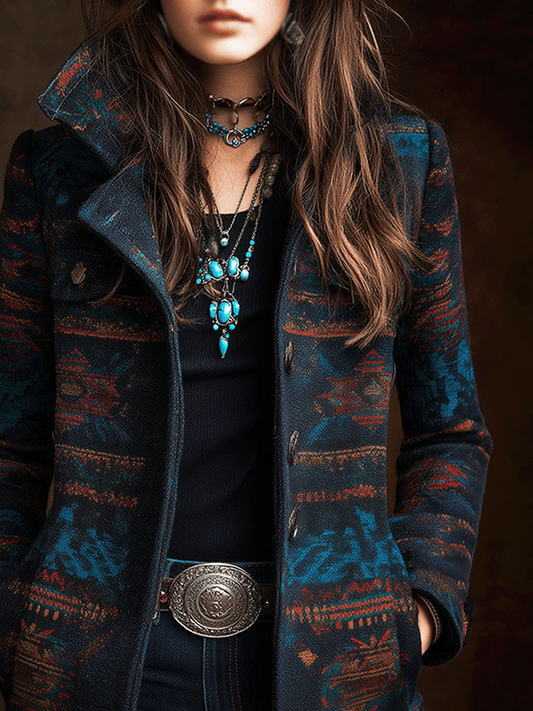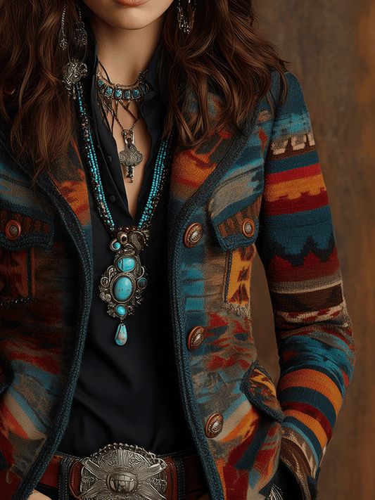 Retro Southwest Geometric Print And Tailored Fit Jacket