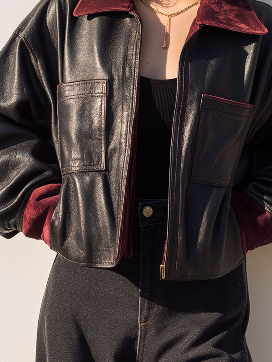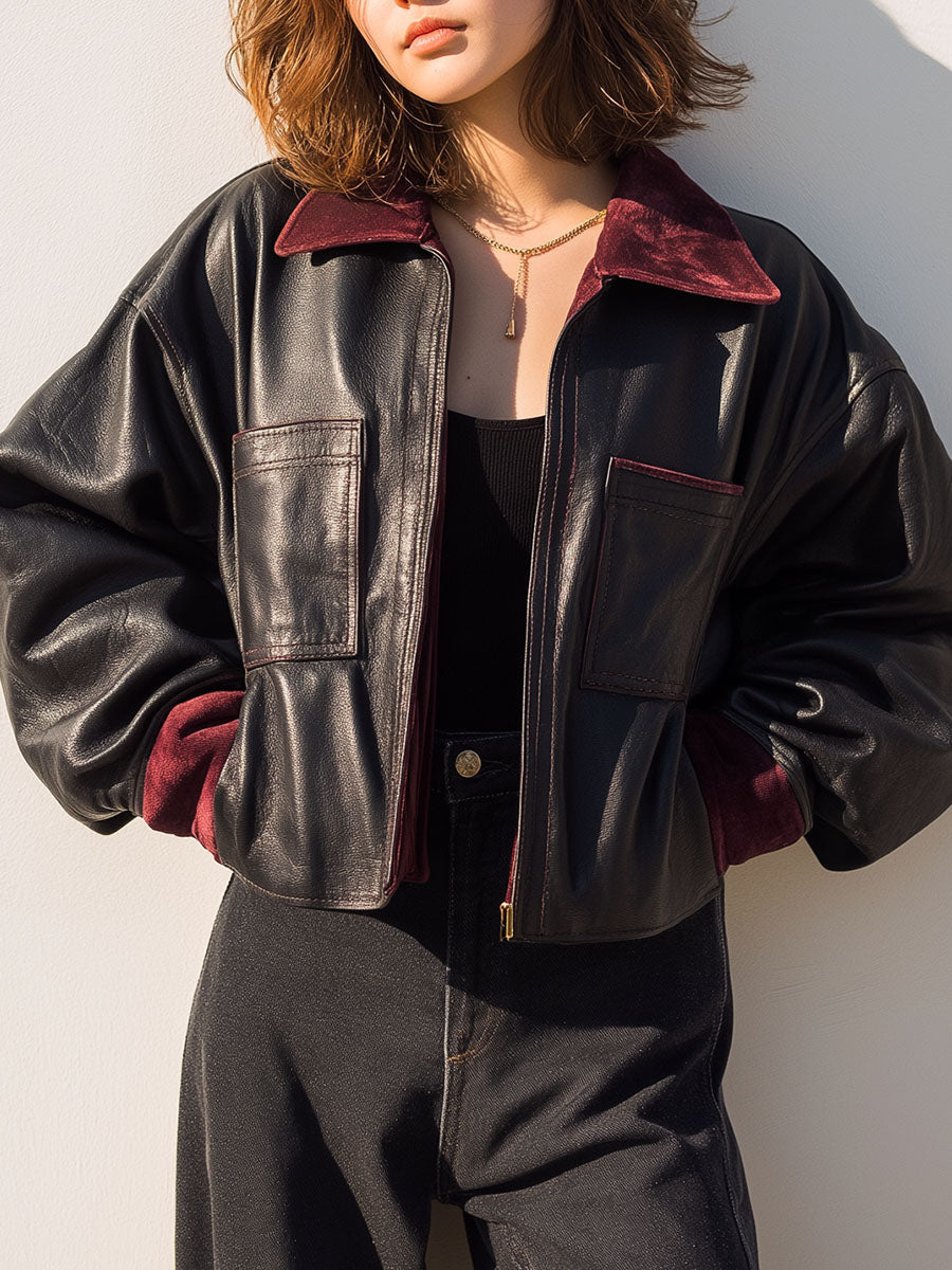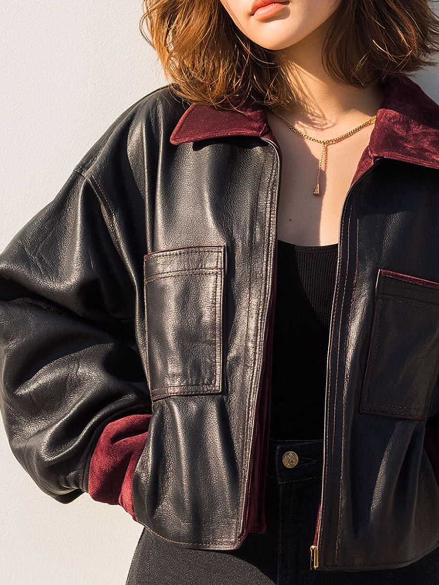 Casual Black Eco Leather Bomber Jacket...