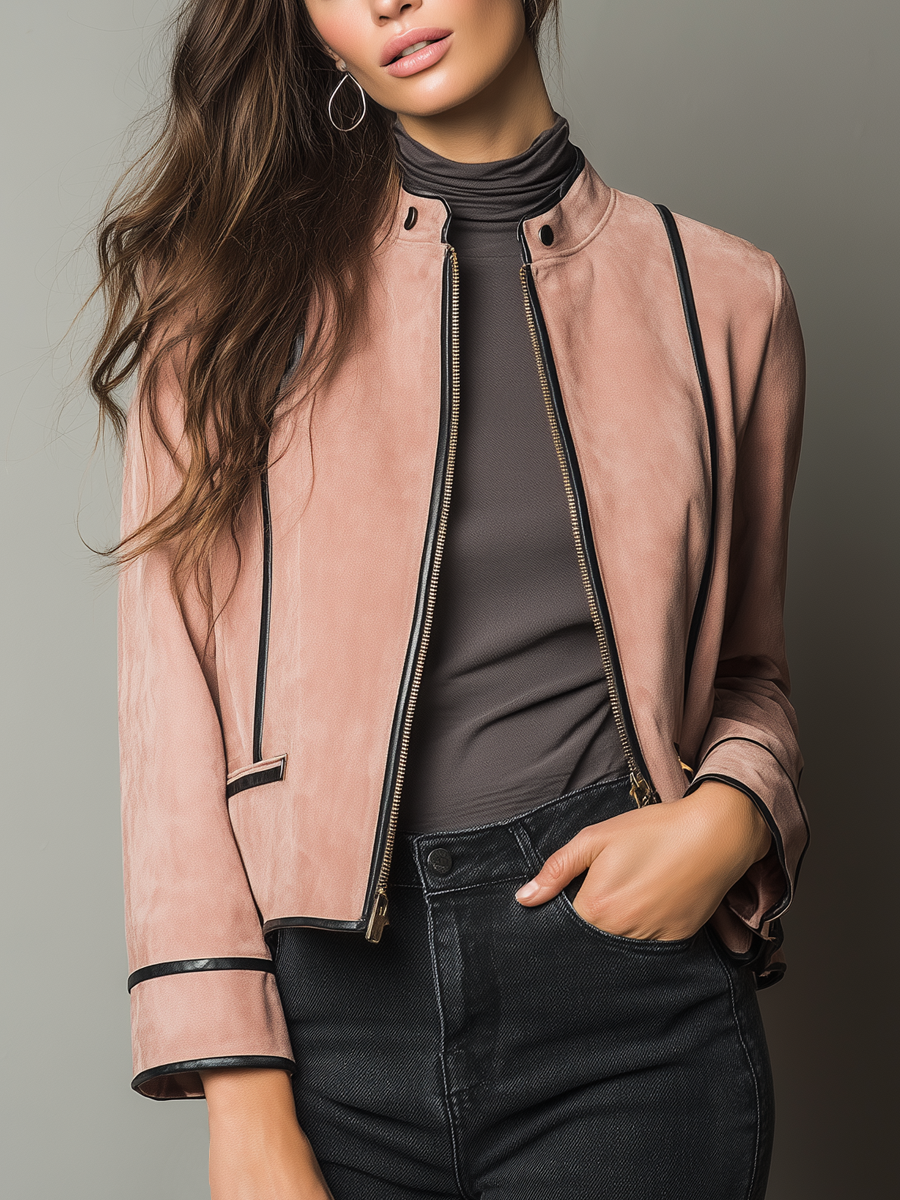 Retro Eco-friendly Leather Contrast Trim Suede...