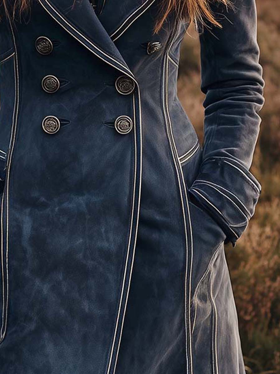 • Double-Breasted Closure: Classic tailoring with engraved vintage buttons.