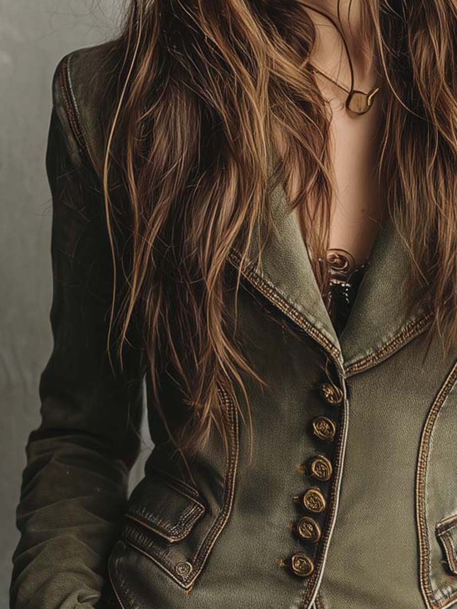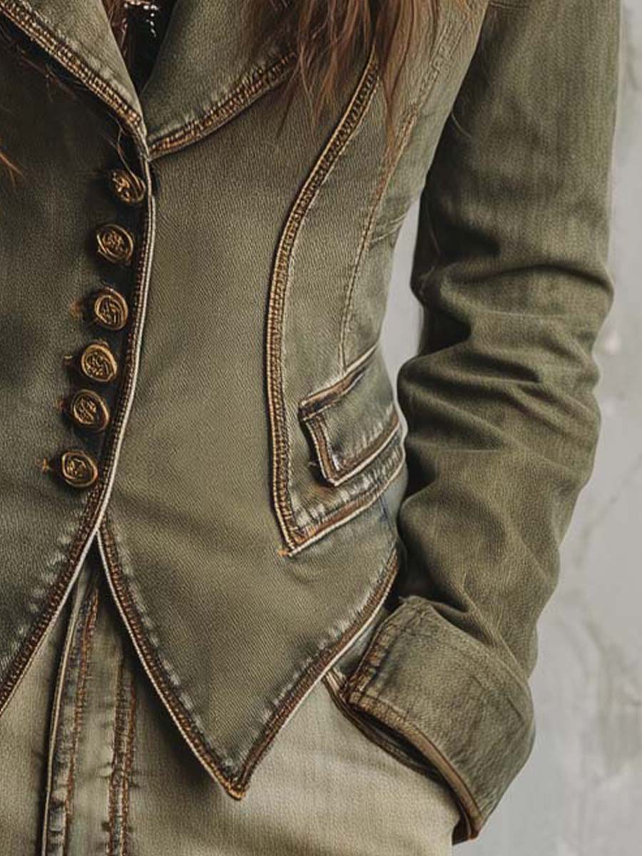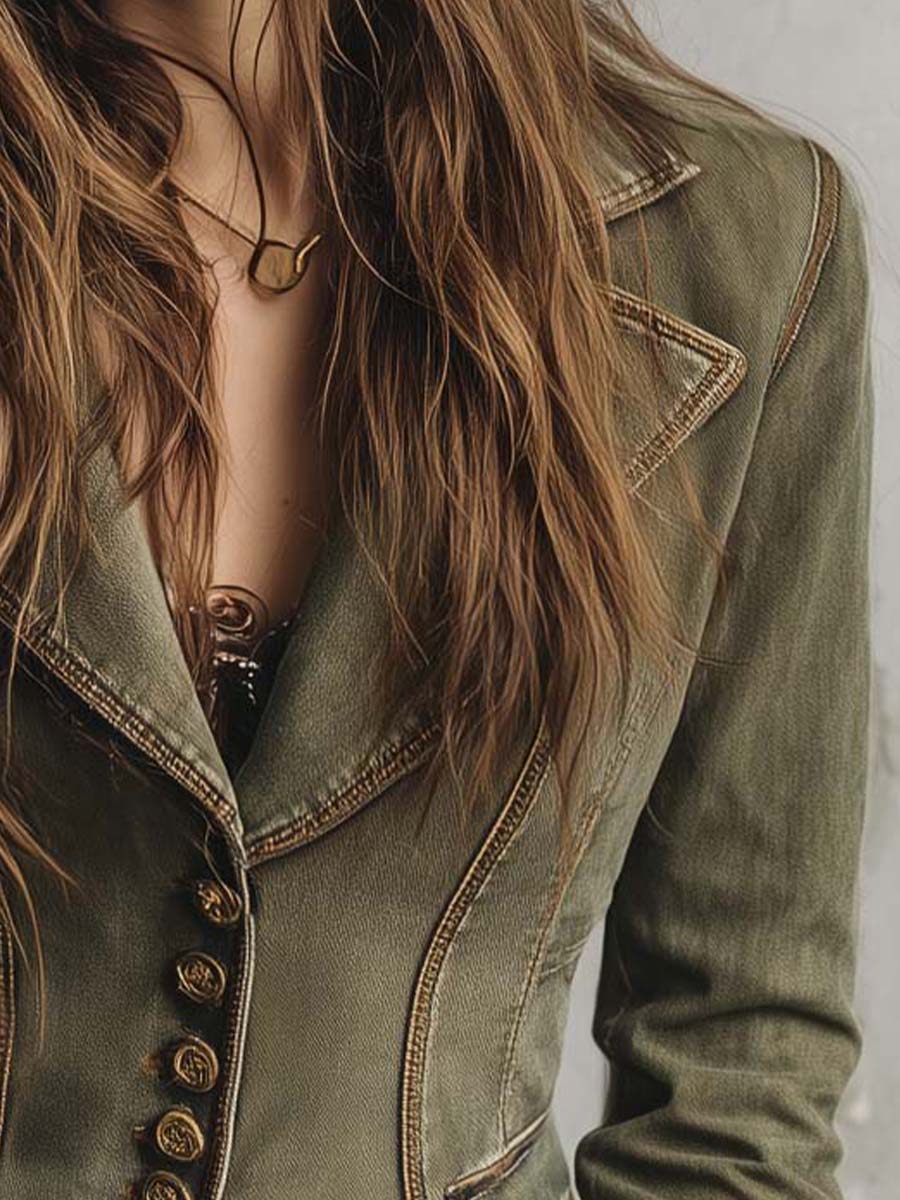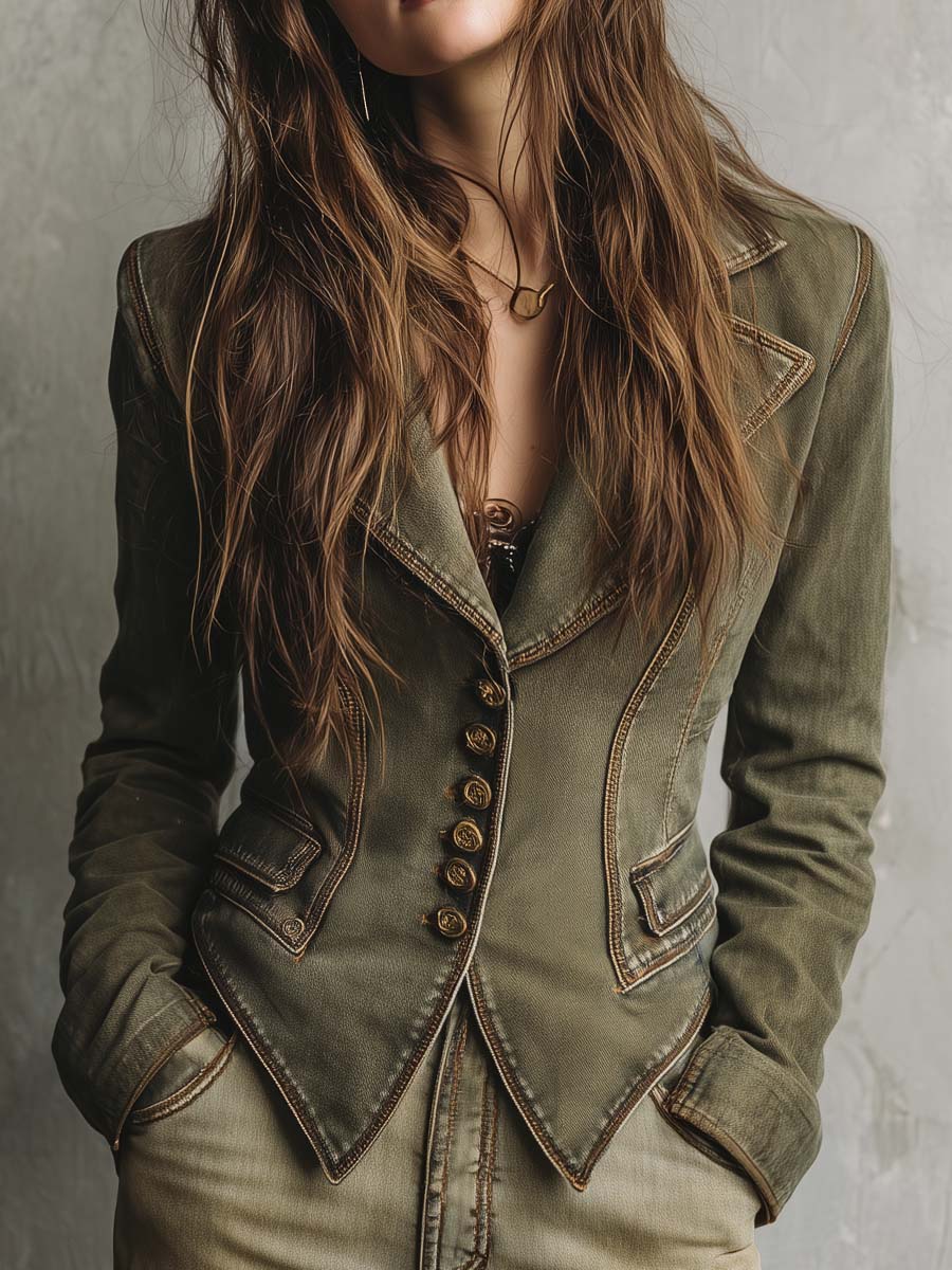 Vintage Olive Green Tailored Blazer With...